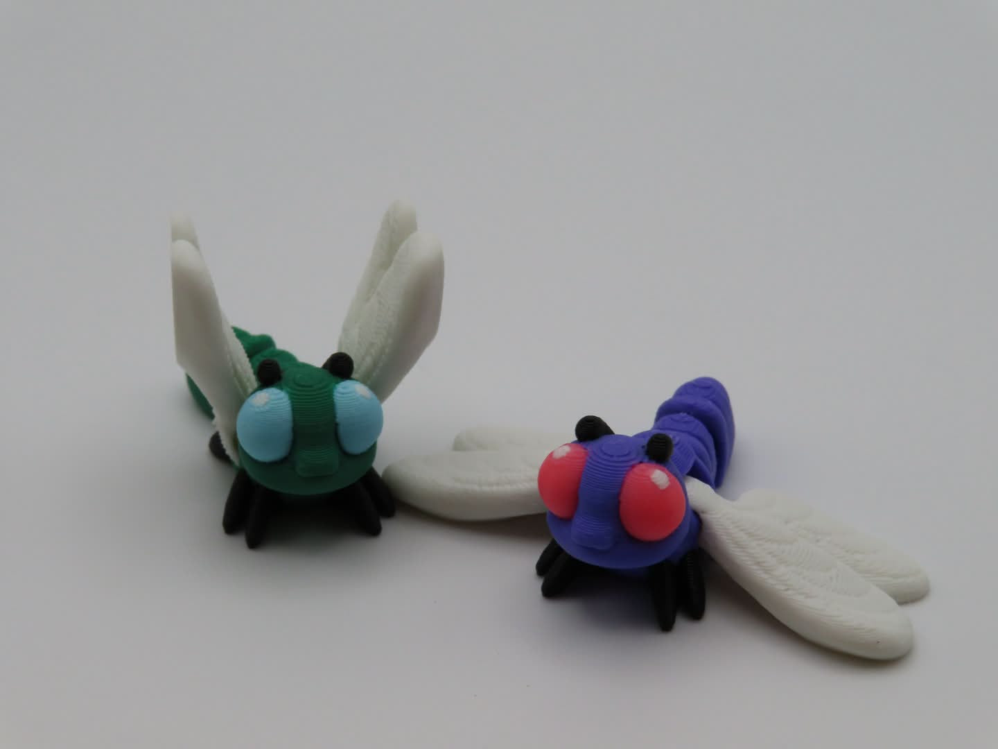 These articulated dragonflies have flexible bodies that wiggle as you move them. Each one is 3D printed by TailTech3D in vibrant multicolor filament, making every batch unique. Includes 2 WiggleWing Dragonflies perfect for collecting, gifting, or sharing. You can purchase them as a duo (default) or select a single dragonfly.